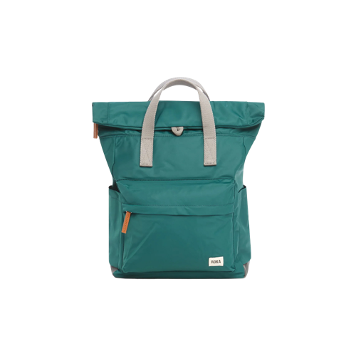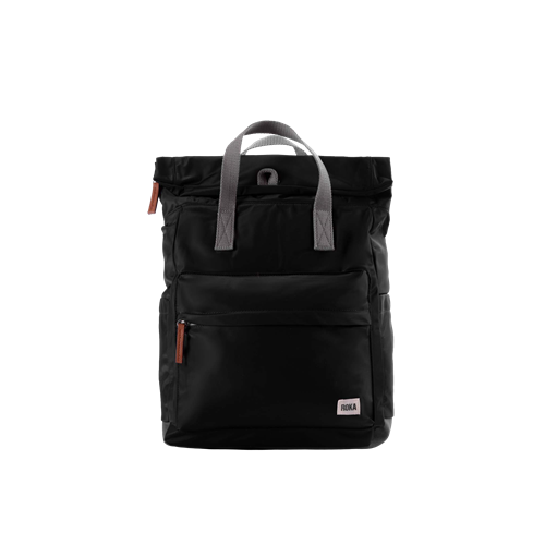 Roll up in style with the ROKA London roll-top backpack. The Canfield Backpack is weather-resistant, durable and sleek, making it perfect for anywhere your day might take you. The roll-top design enables a wide-mouth opening, complete with a zip and a magnetic hold and so you can fill this bag to the brim worry-free. A secure and innovative closing feature, secret wallet pocket, and chunky zip come together to create a secure and trendy backpack. No matter the length of the commute, the weather outside, or how many belongings you’re toting, the Canfield is the ideal travel accessory, commuter bag, kids school bag, and all round practical backpack. Twelve or more plastic bottles are used to make the recycled (rPET) materials for each Canfield bag, and all ROKA London bags are vegan friendly too!