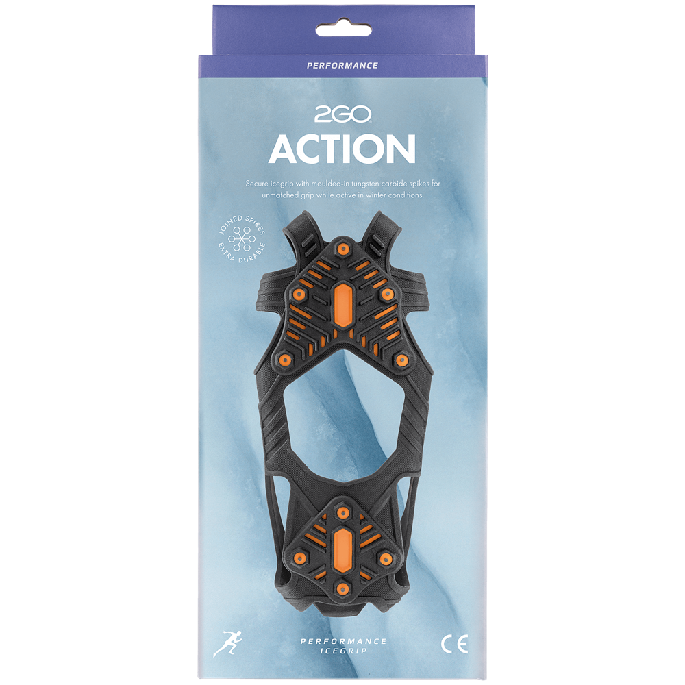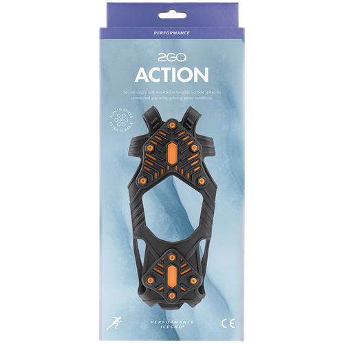 2GO Action är ett säkert halkskydd för både framfot och häl, utformat för att ge optimalt grepp under jogging, löpning och liknande aktiviteter på snö, is och snömodd. Formgjutet för överlägsen passform och flexibilitet. Nio sammanfogade dubbar av volframkarbid sk tungsten ger ett perfekt grepp för hela fotbladet. Reflex på hälen. Lätt att ta av och på.